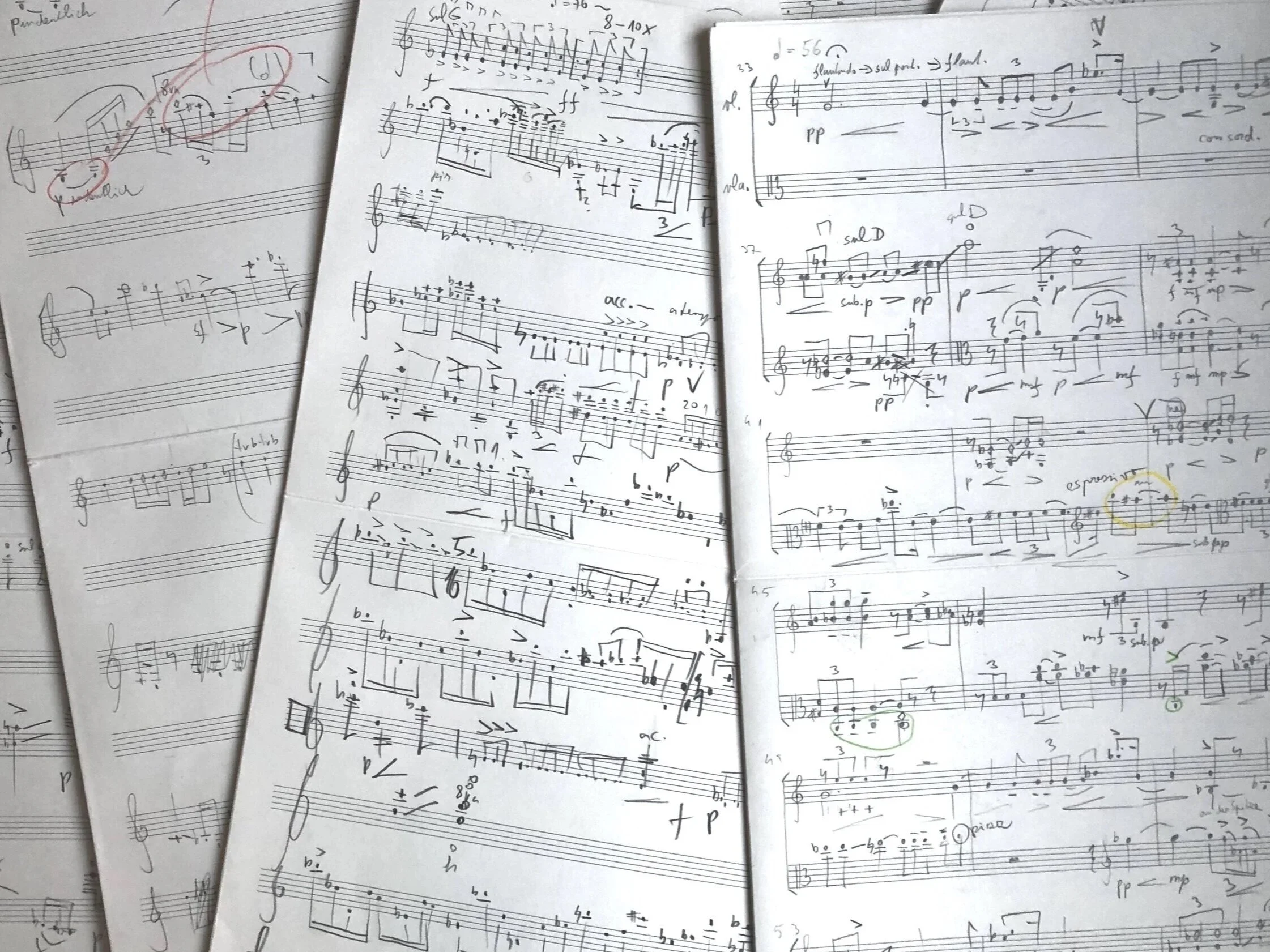 The introduction is based on the timbre of the notes, with the same note played on different strings. The two violins react to each other indirectly through the echo and touch each other from a distance in a heartfelt interplay. At first, the developing dialogue of two voices is an inner dance that gradually opens up and is expressed through increasingly lively movement. The dance is first light and agile, then energetic and wild. The scenes are changing, and two voices are constantly looking for ways to express their common movement.